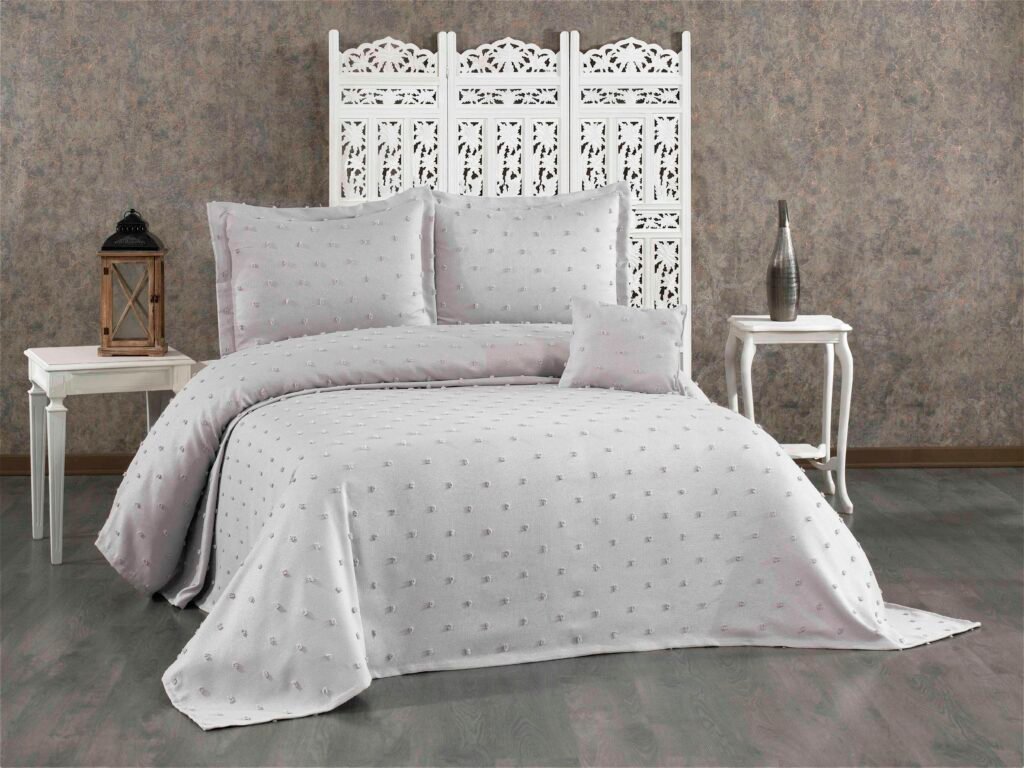 Çeyizlerin en zarif ve kullanışlı parçalarından biri olan Viorra Collection Jakarlı Pike Takımı, yatak odanızın dekorasyonuna asil bir dokunuş katmak için tasarlandı. Jakar dokuma tekniği ile kumaşa işlenen kendinden desenli motifler, yatak odanıza derinlik ve zengin bir görünüm kazandırır.